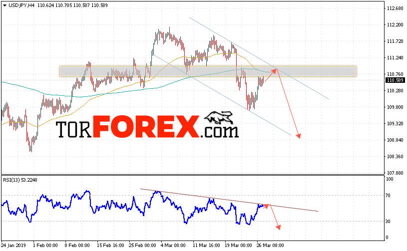 Таким образом, USD/JPY прогноз Доллар Иена на 28 марта 2019 предполагает попытку теста области сопротивления вблизи уровня 110.80. Затем продолжение падения котировок в область ниже уровня 108.85. В пользу снижения пары выступит тест линии тренда на индикаторе относительной силы. Отменой варианта падения станет сильный рост и пробой области 111.25. Это укажет на пробой уровня сопротивления и продолжение восходящего движения по паре с потенциальной целью выше уровня 112.15.