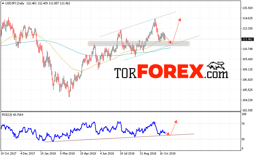 Таким образом, USD/JPY прогноз Доллар Иена на 29 октября — 2 ноября 2018 предполагает попытку теста уровня поддержки вблизи области 111.25, откуда стоит ожидать продолжения снижения пары в область ниже уровня 114.65, дополнительным сигналом в пользу роста выступит тест линии поддержки на индикаторе относительной силы, отменой варианта роста пары станет падение и пробой уровня 110.30, что укажет на продолжение снижения пары.