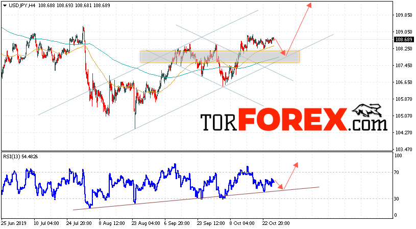 Котировки валютной пары Доллар Иена USD/JPY продолжают движение в рамках роста и восходящего канала. В момент публикации прогноза курс Доллара США к Японской Иене составляет 108.68. Скользящие средние указывают на наличие краткосрочной бычьей тенденции по паре, цены располагаются выше сигнальных линий, что указывает на давление со стороны покупателей. В рамках прогноза курса Японской Иены на 29 октября 2019 стоит ожидать попытку снижения и тест области поддержки вблизи уровня 108.15. Далее, отскок и продолжение роста пары USD/JPY в область выше уровня 110.95.