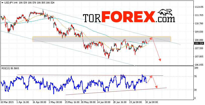 Таким образом, USD/JPY прогноз Доллар Иена на 31 июля 2019 предполагает попытку теста области сопротивления вблизи уровня 108.95. Затем продолжение роста котировок в область ниже уровня 106.75. В пользу падения пары выступит тест линии тренда на индикаторе относительной силы. Отменой варианта снижения станет сильный рост и пробой области 109.75. Это укажет на пробой уровня сопротивления и продолжение развития роста по паре с потенциальной целью выше уровня 111.05.