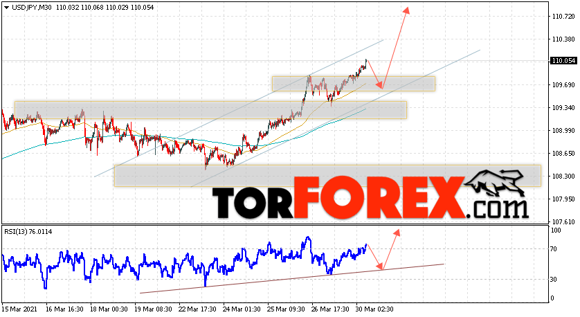 Таким образом, USD/JPY прогноз Доллар Иена на 31 марта 2021 предполагает попытку теста области поддержки вблизи уровня 109.65. Затем, продолжение подъёма котировок в область выше уровня 110.95. В пользу роста пары выступит тест линии тренда на индикаторе относительной силы. Отменой варианта подъёма станет падение и пробой области 108.95. Это укажет на пробой уровня поддержки и продолжение снижения по паре с потенциальной целью ниже уровня 106.75.