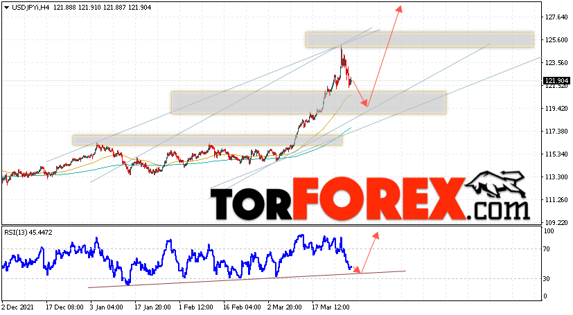Таким образом, USD/JPY прогноз Доллар Иена на 31 марта 2022 предполагает попытку теста области поддержки вблизи уровня 119.65. Затем, продолжение роста котировок в область выше уровня 129.05. В пользу подъёма пары выступит тест линии тренда на индикаторе относительной силы. Отменой варианта роста станет падение и пробой области 117.05. Это укажет на пробой уровня поддержки и продолжение падения по паре с потенциальной целью ниже уровня 112.45.