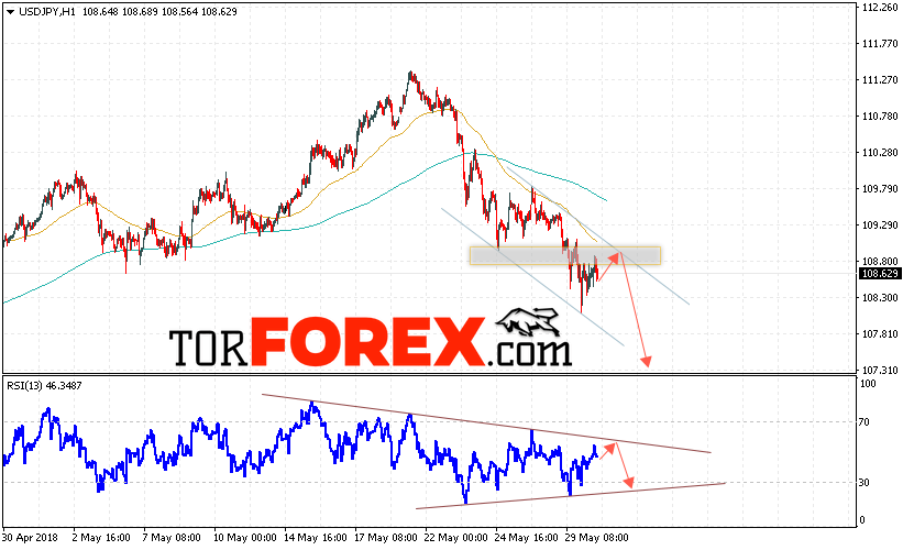 Таким образом, USD/JPY прогноз Доллар Иена на 31 мая 2018 предполагает попытку теста области сопротивления вблизи уровня 108.90 и продолжения падения котировок в область ниже уровня 107.30, в пользу падения выступит тест линии тренда на индикаторе относительной силы, отменой варианта падения станет сильный рост и пробой области 109.30.