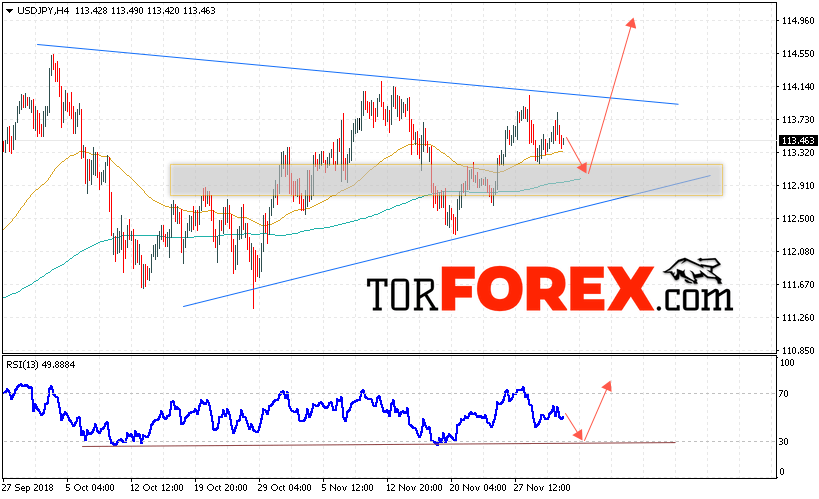 Таким образом, USD/JPY прогноз Доллар Иена на 4 декабря 2018 предполагает попытку теста области поддержки вблизи уровня 113.10. Затем продолжение роста котировок в область выше уровня 115.00. В пользу роста пары выступит тест линии тренда на индикаторе относительной силы. Отменой варианта роста станет падение и пробой области 112.35. Это укажет на пробой нижней границы модели «Треугольник» и продолжение нисходящего движения по паре.
