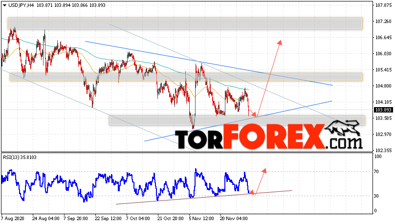 Таким образом, USD/JPY прогноз Доллар Иена на 4 декабря 2020 предполагает попытку теста области поддержки вблизи уровня 103.65. Затем, продолжение роста котировок в область выше уровня 106.55. В пользу подъёма пары выступит тест линии тренда на индикаторе относительной силы. Отменой варианта роста станет падение и пробой области 102.95. Это укажет на пробой уровня поддержки и продолжение снижения по паре с потенциальной целью ниже уровня 99.05.