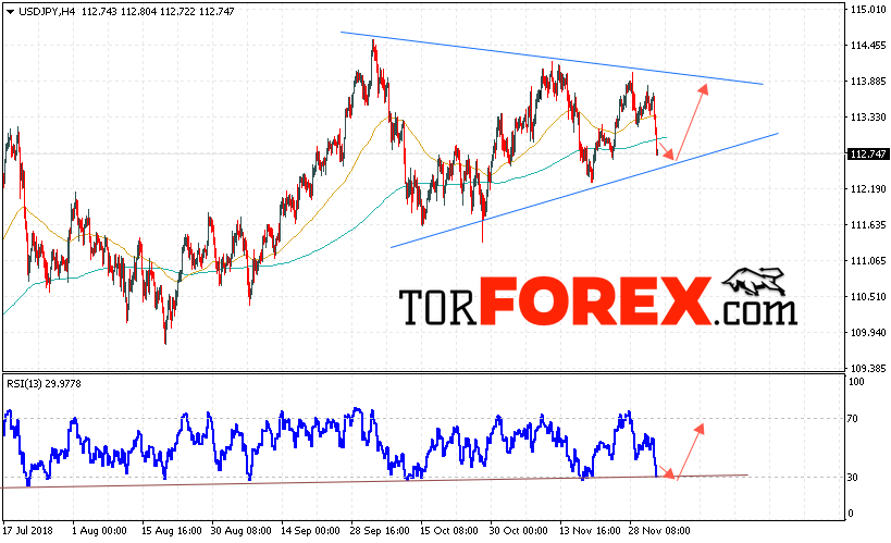 Таким образом, USD/JPY прогноз Доллар Иена на 5 декабря 2018 предполагает попытку теста области поддержки вблизи уровня 112.55. Затем продолжение роста котировок в область выше уровня 113.85. В пользу роста пары выступит тест линии тренда на индикаторе относительной силы. Отменой варианта роста станет падение и пробой области 112.15. Это укажет на пробой нижней границы модели «Треугольник» и продолжение нисходящего движения по паре.