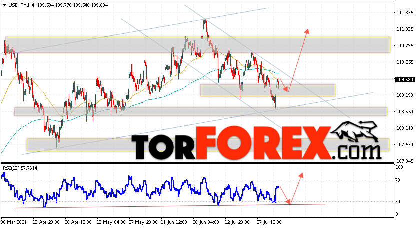 Таким образом, USD/JPY прогноз Доллар Иена на 6 августа 2021 предполагает попытку теста области поддержки вблизи уровня 109.45. Затем, продолжение подъёма котировок в область выше уровня 111.45. В пользу роста пары выступит тест линии тренда на индикаторе относительной силы. Отменой варианта подъёма станет падение и пробой области 107.85. Это укажет на пробой уровня поддержки и продолжение падения по паре с потенциальной целью ниже уровня 105.65.