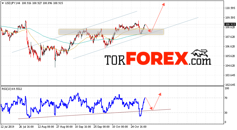 Котировки валютной пары Доллар Иена USD/JPY продолжают движение в рамках роста и восходящего канала. В момент публикации прогноза курс Доллара США к Японской Иене составляет 108.91. Скользящие средние указывают на наличие краткосрочной бычьей тенденции по паре, цены оттолкнулись от области между сигнальными линиями, что указывает на давление со стороны покупателей. В рамках прогноза курса Японской Иены на 6 ноября 2019 стоит ожидать попытку снижения и тест области поддержки вблизи уровня 108.10. Далее, отскок и продолжение роста пары USD/JPY в область выше уровня 110.75.