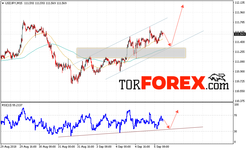 Котировки валютной пары Доллар Иена USD/JPY продолжают движение в рамках восходящего канала. В момент публикации прогноза курс Доллара США к Японской Иене составляет 111.56. На данный момент стоит ожидать попытку теста области поддержки вблизи уровня 111.35 и продолжение роста пары USD/JPY в область выше уровня 112.15.