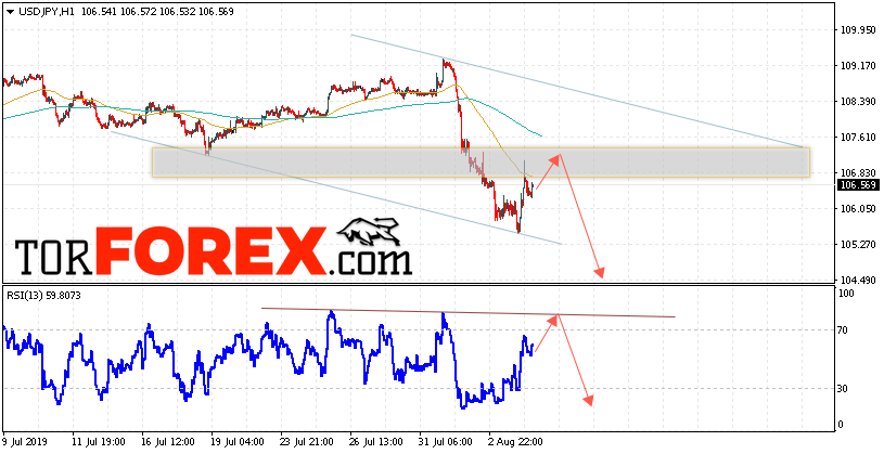 Таким образом, USD/JPY прогноз Доллар Иена на 7 августа 2019 предполагает попытку теста области сопротивления вблизи уровня 107.25. Затем продолжение падения котировок в область ниже уровня 104.45. В пользу снижения пары выступит тест линии тренда на индикаторе относительной силы. Отменой варианта снижения станет сильный рост и пробой области 108.35. Это укажет на пробой уровня сопротивления и продолжение развития подъёма по паре с потенциальной целью выше уровня 110.65.