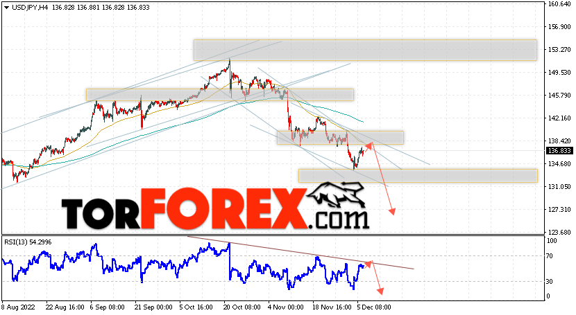 Таким образом, USD/JPY прогноз Доллар Иена на 7 декабря 2022 предполагает попытку теста области сопротивления вблизи уровня 138.05. Затем, продолжение падения котировок в область ниже уровня 126.95. В пользу снижения пары выступит тест линии тренда на индикаторе относительной силы. Отменой варианта падения станет сильный рост и пробой области 140.45. Это укажет на пробой уровня сопротивления и продолжение роста по паре с потенциальной целью выше уровня 143.75.