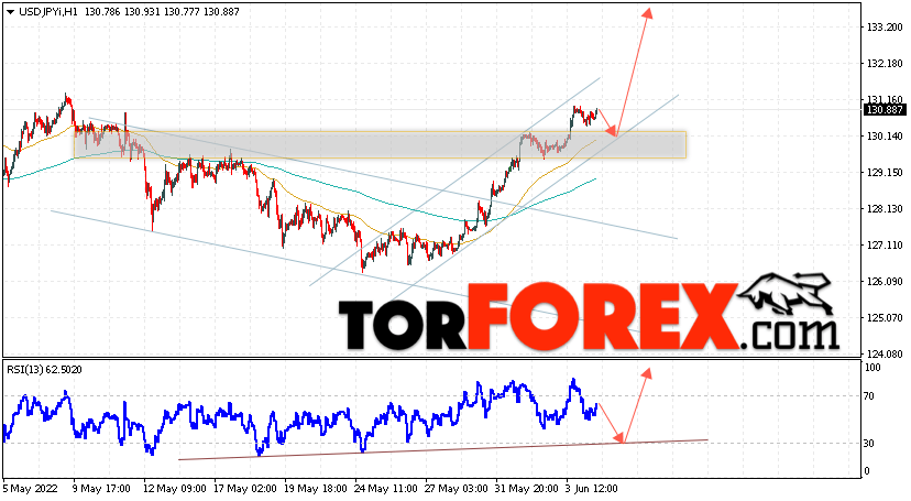 Котировки валютной пары Доллар Иена USD/JPY продолжают движение в рамках роста и бычьего канала. В момент публикации прогноза курс Доллара США к Японской Иене составляет 130.88. Скользящие средние указывают на наличие краткосрочной медвежьей тенденции по паре. Цены пробили область между сигнальными линиями вверх, что указывает на давление со стороны покупателей Доллара США и потенциальное продолжение роста цен уже с текущих уровней. В рамках прогноза курса Японской Иены на 7 июня 2022 стоит ожидать попытку развития снижения и тест области поддержки вблизи уровня 130.15. Далее, отскок цены вверх и продолжение подъёма пары USD/JPY в область выше уровня 133.65.