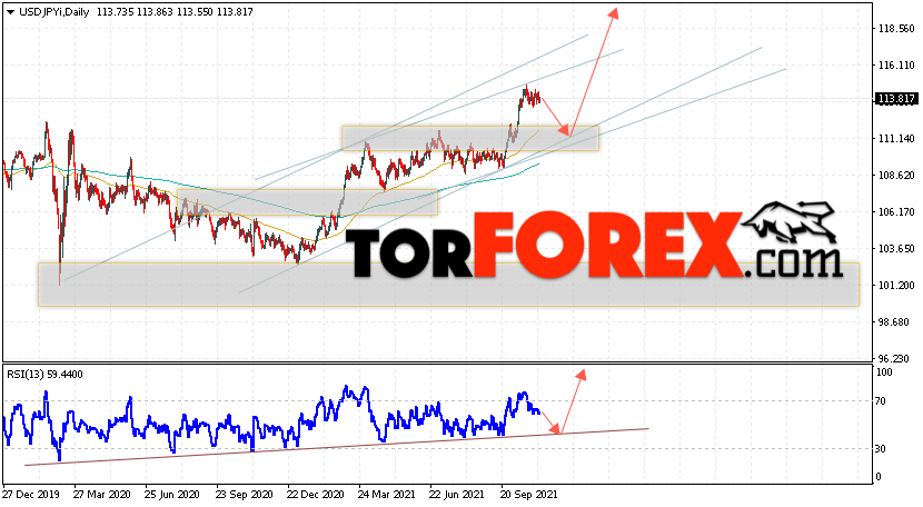 Дополнительным сигналом в пользу подъёма пары Доллар Иена на текущий торговой неделе выступит тест восходящей линии тренда на индикаторе относительной силы. Вторым сигналом станет отскок от нижней границы бычьего канала. Отменой варианта подъёма пары USD/JPY на текущей торговой неделе 8 — 12 ноября 2021 выступит падение и пробой области 108.75. Такой вариант укажет на пробой области поддержки и продолжение падения пары на Форекс в область ниже уровня 106.05. Подтверждением подъёма по паре USD/JPY выступит пробой области сопротивления и закрытие цены над уровнем 116.05.