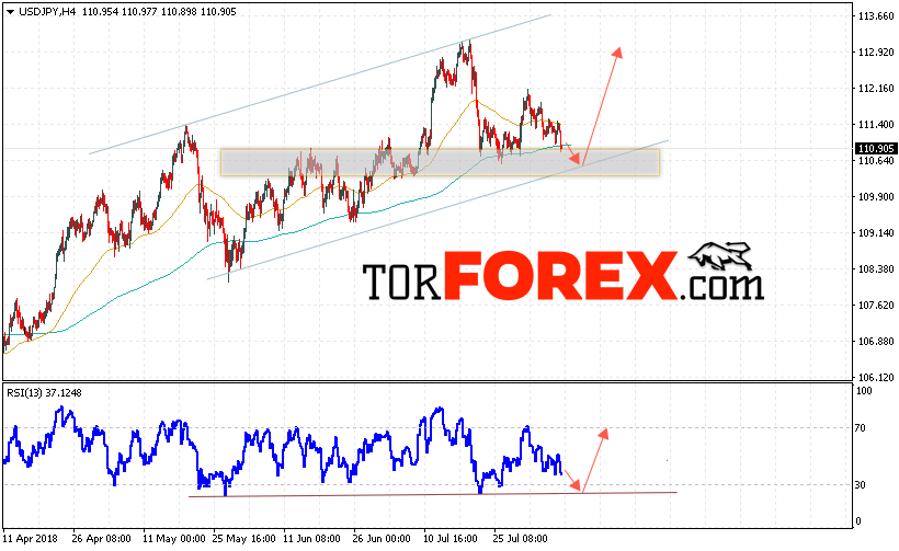 Таким образом, USD/JPY прогноз Доллар Иена на 9 августа 2018 предполагает попытку теста области поддержки вблизи уровня 110.55 и продолжения роста котировок в область выше уровня 113.70, в пользу роста пары выступит тест линии тренда на индикаторе относительной силы, отменой варианта роста станет снижение и пробой области 109.80, что укажет на пробой области поддержки и продолжение падения пары.