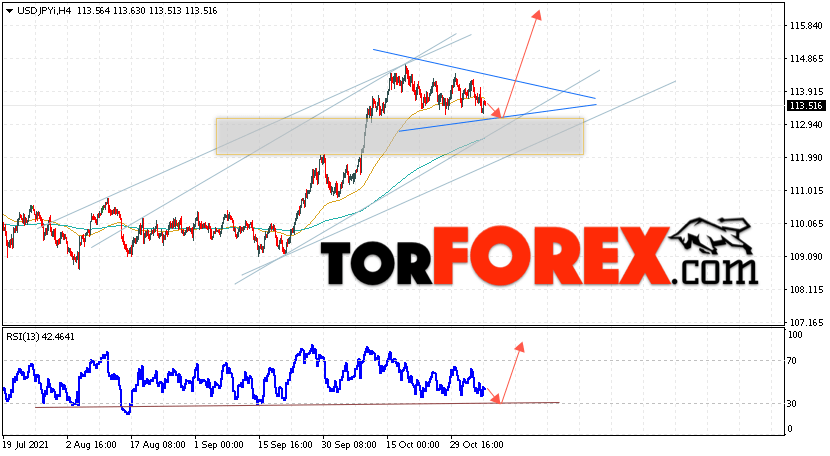 Котировки валютной пары Доллар Иена USD/JPY продолжают движение в рамках коррекции и формирования модели ”Треугольник”. В момент публикации прогноза курс Доллара США к Японской Иене составляет 113.51. Скользящие средние указывают на наличие краткосрочной бычьей тенденции по паре. Цены вновь тестируют область между сигнальными линиями, что указывает на давление со стороны покупателей Доллара США и потенциальное продолжение подъёма цен уже с текущих уровней. В рамках прогноза курса Японской Иены на 9 ноября 2021 стоит ожидать попытку развития медвежьей коррекции и тест области поддержки вблизи уровня 113.05. Далее, отскок вверх и продолжение подъёма пары USD/JPY в область выше уровня 116.55.