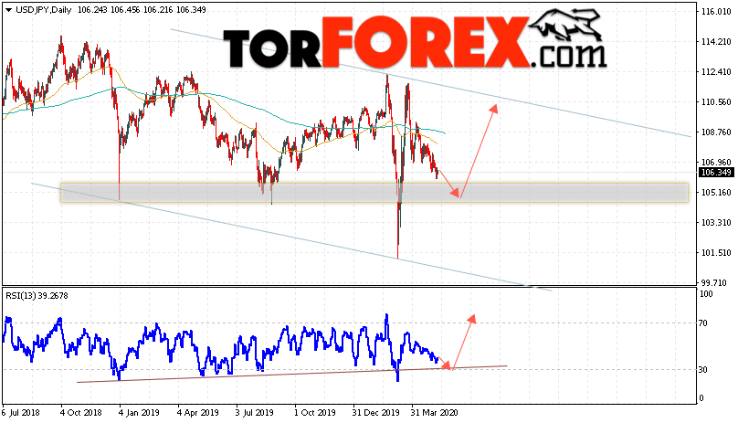 Таким образом, USD/JPY прогноз Доллар Иена на 11 — 15 мая 2020 предполагает попытку теста уровня поддержки вблизи области 105.15. Откуда стоит ожидать продолжения роста пары в область выше уровня 110.65. Дополнительным сигналом в пользу подъёма выступит тест линии тренда на индикаторе относительной силы. Отменой варианта роста пары станет падение и пробой уровня 102.55. Это укажет на продолжение снижения пары с потенциальной целью ниже области 98.55.