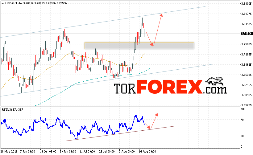 Таким образом, USD/PLN прогноз Польский Злотый на 17 августа 2018 предполагает попытку теста области поддержки вблизи уровня 3.75, откуда стоит ожидать отскок и продолжение роста валютной пары с потенциальной целью на уровне 3.85, в пользу роста курса Доллара выступит тест линии тренда на индикаторе относительной силы, отменой варианта роста выступит сильное падение и пробой области 3.70.
