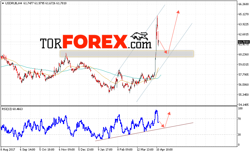Таким образом, USD/RUB прогноз курса Доллара на 13 апреля 2018 предполагает попытку теста уровня поддержки вблизи области 60.30, откуда стоит ожидать отскок и попытку продолжения роста курса Доллара против Рубля с целью выше уровня 65.20, дополнительным сигналом в пользу роста пары выступит тест линии тренда на индикаторе относительной силы.