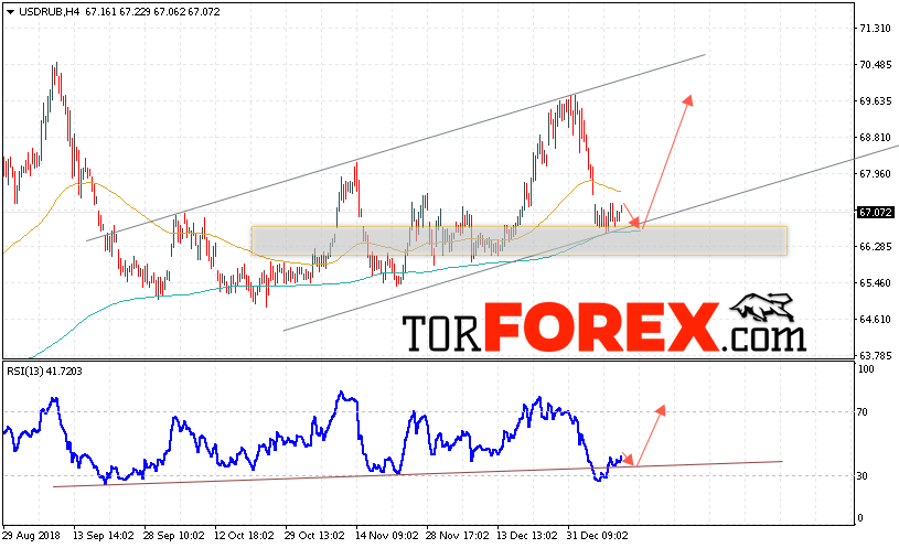 Таким образом, USD/RUB прогноз курса Доллара на 15 января 2019 предполагает попытку теста уровня поддержки вблизи области 66.75. Откуда стоит ожидать отскок и продолжения роста курса Доллара против Рубля с целью выше уровня 69.65. Дополнительным сигналом в пользу роста пары выступит тест линии поддержки на индикаторе относительной силы. Отменой варианта роста станет пробой нижней границы канала и закрытие котировок ниже уровня 66.00.