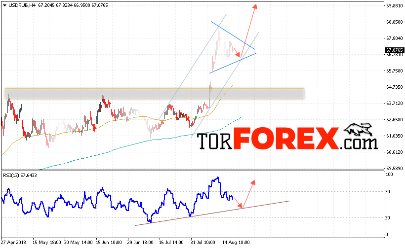 Таким образом, USD/RUB прогноз курса Доллара на 21 августа 2018 предполагает попытку теста уровня поддержки вблизи области 66.60, откуда стоит ожидать отскок и попытку продолжения роста курса Доллара против Рубля с целью выше уровня 70.00, дополнительным сигналом в пользу роста пары выступит тест линии тренда на индикаторе относительной силы, отменой варианта роста станет пробой области поддержки и закрытие котировок ниже уровня 65.50.