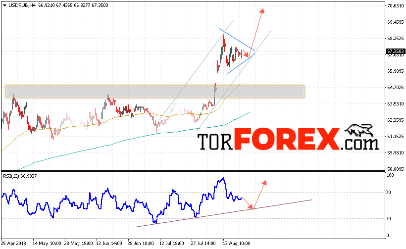 Таким образом, USD/RUB прогноз курса Доллара на 22 августа 2018 предполагает попытку теста уровня поддержки вблизи области 66.95, откуда стоит ожидать отскок и попытку продолжения роста курса Доллара против Рубля с целью выше уровня 70.00, дополнительным сигналом в пользу роста пары выступит тест линии тренда на индикаторе относительной силы, отменой варианта роста станет пробой области поддержки и закрытие котировок ниже уровня 66.20.