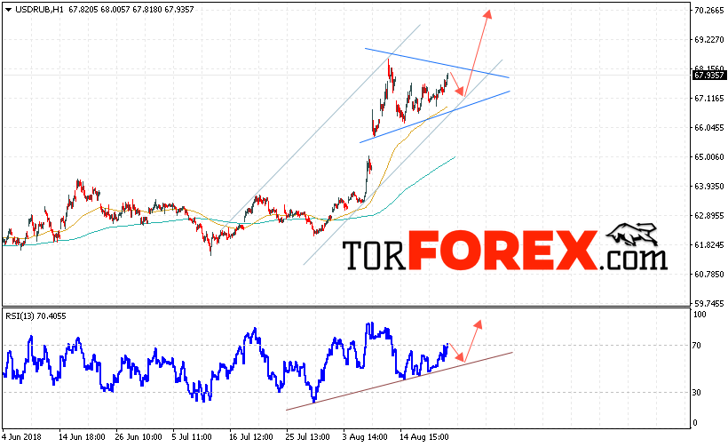 Таким образом, USD/RUB прогноз курса Доллара на 23 августа 2018 предполагает попытку теста уровня поддержки вблизи области 67.15, откуда стоит ожидать отскок и попытку продолжения роста курса Доллара против Рубля с целью выше уровня 70.25, дополнительным сигналом в пользу роста пары выступит тест линии тренда на индикаторе относительной силы, отменой варианта роста станет пробой области поддержки и закрытие котировок ниже уровня 66.50.
