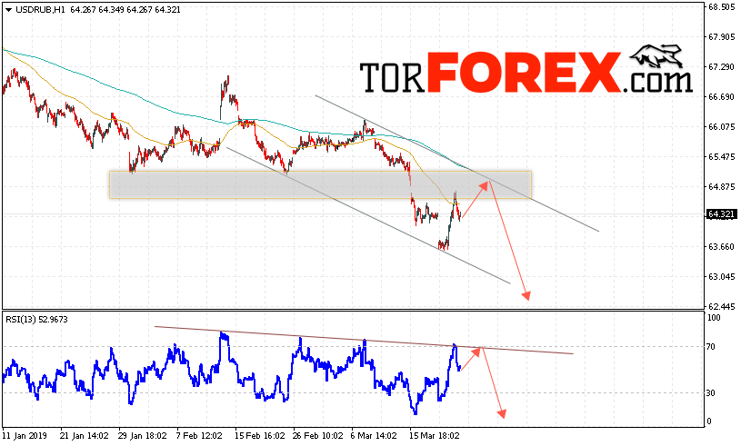 Таким образом, USD/RUB прогноз курса Доллара на 26 марта 2019 предполагает попытку теста уровня поддержки вблизи области 64.85. Откуда стоит ожидать отскок и продолжения падения курса Доллара против Рубля с целью ниже уровня 62.45. Дополнительным сигналом в пользу снижения пары выступит тест области сопротивления на индикаторе относительной силы. Отменой варианта падения станет пробой области сопротивления и закрытие котировок выше уровня 65.45.