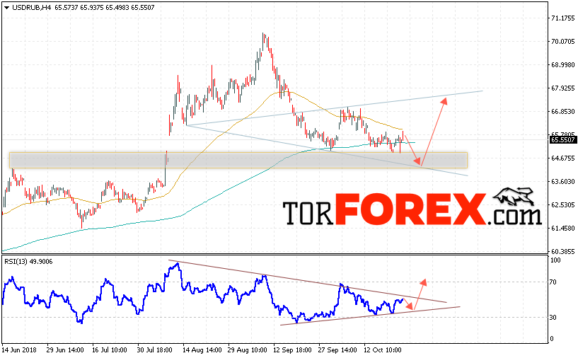 В пользу роста пары USD/RUB выступит тест восходящей линии тренда на индикаторе относительной силы. Отменой варианта роста пары USD/RUB на Форекс станет падение и пробой уровня 63.50 Рублей за Доллар, что укажет на области поддержки и продолжение падения пары Доллар Рубль в область ниже уровня 62.20. Подтверждением роста пары выступит пробой области сопротивления и закрытие выше уровня 66.00.
