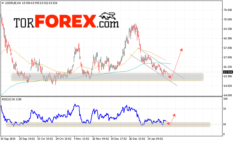 Таким образом, USD/RUB прогноз курса Доллара на 29 января 2019 предполагает попытку теста уровня поддержки вблизи области 65.95. Откуда стоит ожидать отскок и продолжения роста курса Доллара против Рубля с целью выше уровня 67.85. Дополнительным сигналом в пользу роста пары выступит тест области поддержки на индикаторе относительной силы. Отменой варианта роста станет пробой области поддержки и закрытие котировок ниже уровня 64.75.