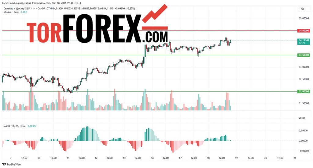 Ожидается, что XAG/USD останется в диапазоне $33,50–$34,50 в течение следующих суток. Пробой $34,50 вверх создаст предпосылки для продолжения роста, тогда как закрепление ниже $33,50 усилит нисходящий импульс. Трейдерам рекомендуется внимательно следить за реакцией рынка у этих ключевых уровней, так как их пробой определит дальнейшее направление курса серебра.