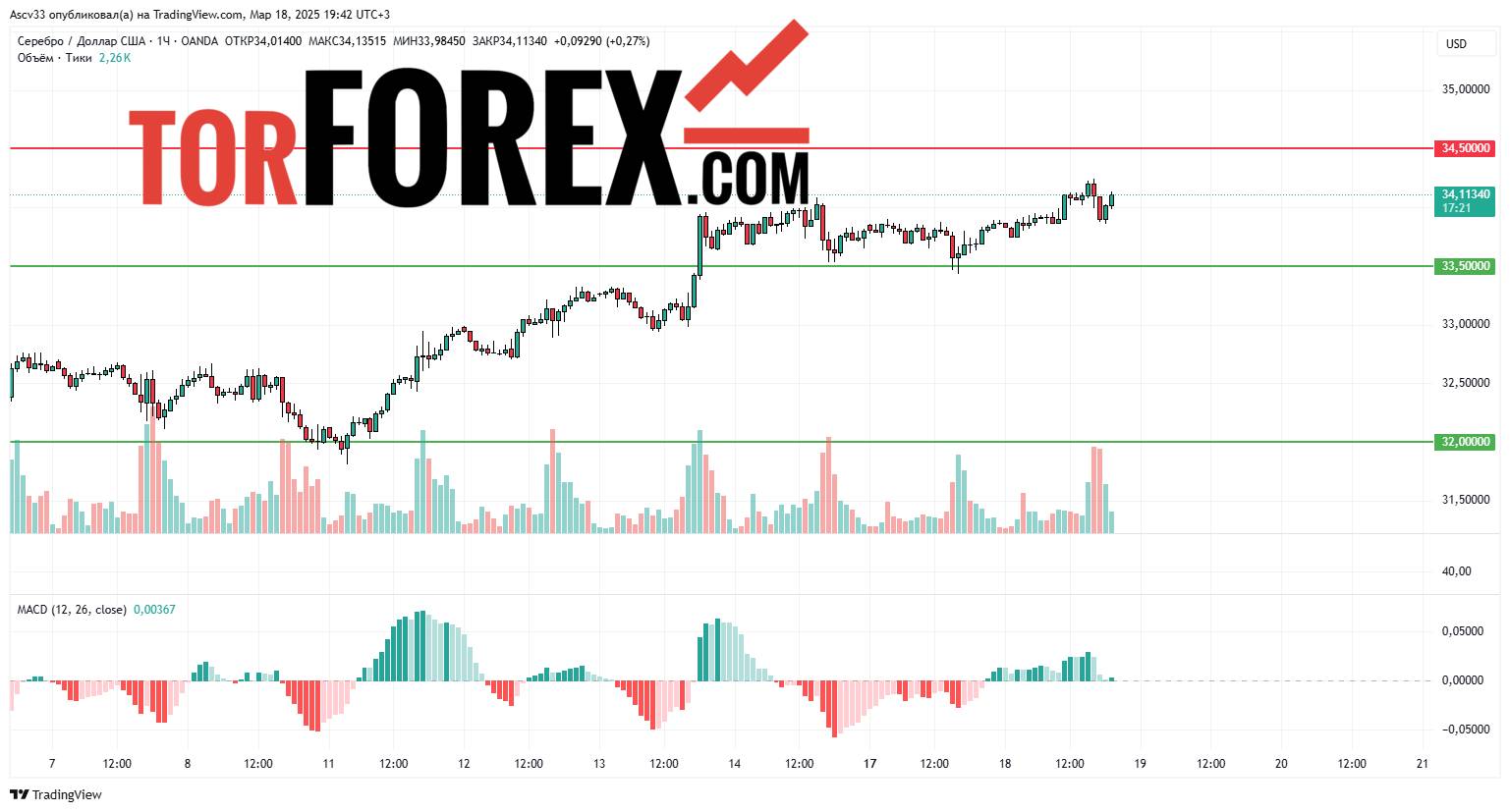 - $34,50 – пробой этого уровня усилит восходящее движение и откроет путь к новым максимумам