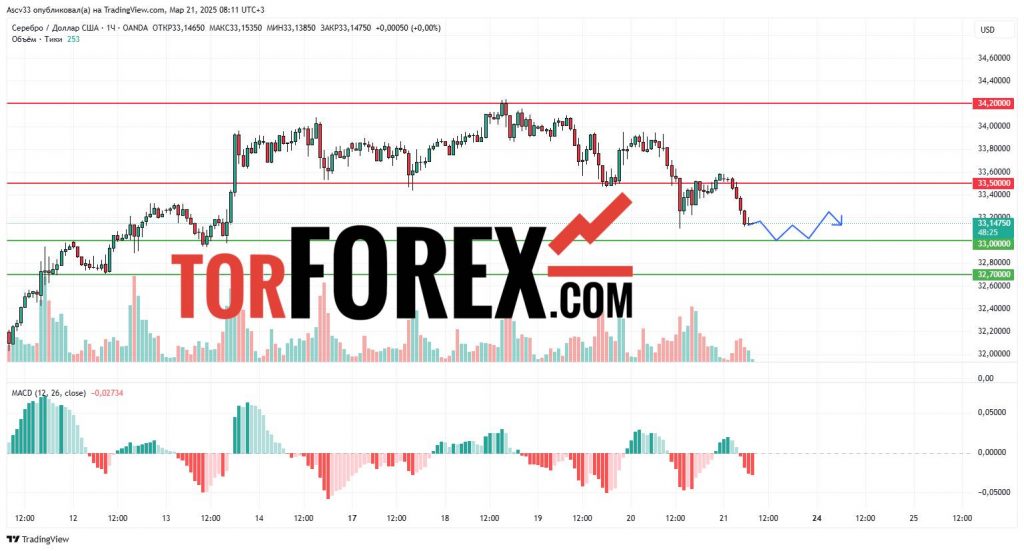 - 33,50 USD – преодоление этого уровня может укрепить бычий тренд и открыть путь к 34,20 USD.