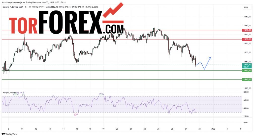 В ближайшие сутки пара XAU/USD, вероятно, продолжит движение в диапазоне $2 860–$2 930. Трейдерам рекомендуется внимательно следить за реакцией цены на ключевые уровни поддержки и сопротивления, поскольку их пробой может указать на дальнейшее направление движения. Особое внимание следует уделить уровню $2 930: его преодоление может усилить бычьи настроения на рынке.
