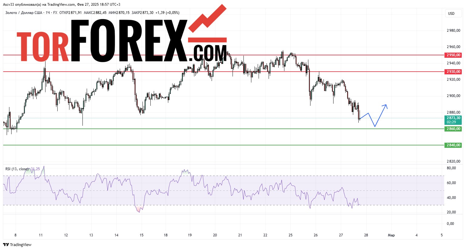 Прогноз Золото Доллар XAU/USD на 27 февраля 2025