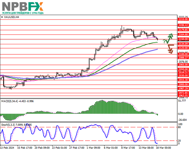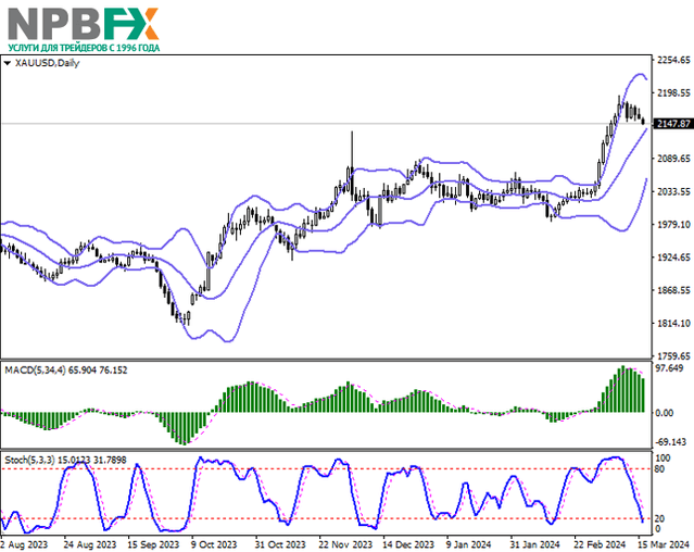 Пара XAU/USD развивает «медвежий» импульс, сформированный на прошлой неделе: инструмент тестирует отметку 2145.00 на пробой вниз, обновляя локальные минимумы от 7 марта.