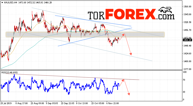 Таким образом, XAU/USD прогноз цен на Золото на 20 ноября 2019 предполагает попытку теста области сопротивления вблизи уровня 1475. Далее, продолжение падения котировок с целью ниже уровня 1415. Отменой варианта падения цен на Золото выступит сильный рост и пробой уровня 1520. Это укажет на пробой области сопротивления. В этом случае стоит ожидать продолжения подъёма Золота выше уровня 1575.