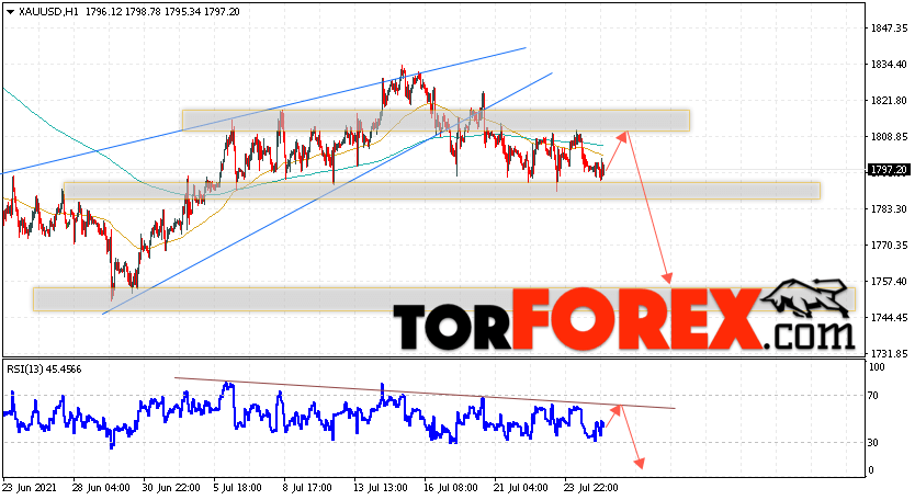 XAU/USD прогноз цен на Золото на 28 июля 2021