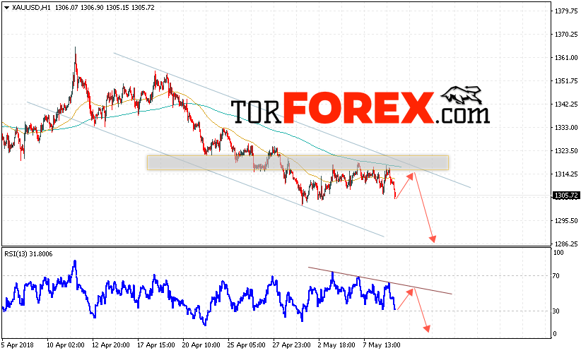 Таким образом, XAU/USD прогноз цен на Золото на 10 мая 2018 предполагает попытку теста области сопротивления вблизи уровня 1315 и продолжения падения котировок с целью ниже уровня 1285, отменой варианта падения цен на Золото выступит пробой уровня 1325, в этом случае стоит ожидать продолжения роста в область выше уровня 1355.