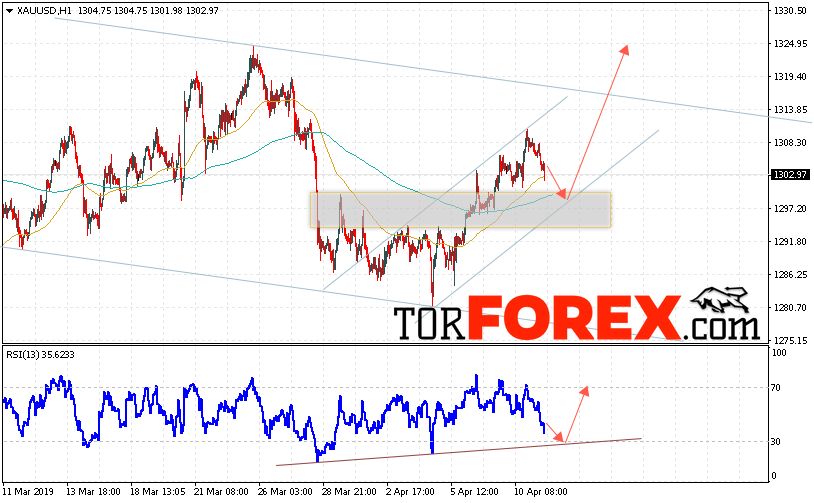 Таким образом, XAU/USD прогноз цен на Золото на 12 апреля 2019 предполагает попытку теста области поддержки вблизи уровня 1297. Далее, продолжение роста котировок с целью выше уровня 1325. Отменой варианта подъёма цен на Золото выступит падение и пробой уровня 1290. Это укажет на пробой нижней границы канала. В этом случае стоит ожидать продолжения снижения Золота ниже уровня 1270.