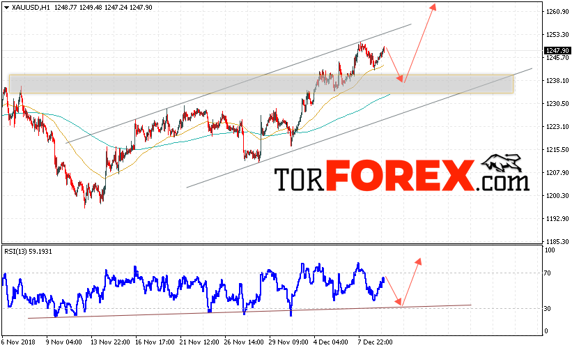 Таким образом, XAU/USD прогноз цен на Золото на 12 декабря 2018 предполагает попытку теста области поддержки вблизи уровня 1240. Далее, продолжение роста котировок с целью выше уровня 1265. Отменой варианта роста цен на Золото выступит падение и пробой уровня 1225. Это укажет на пробой области поддержки. В этом случае стоит ожидать продолжения падения Золота ниже уровня 1195.