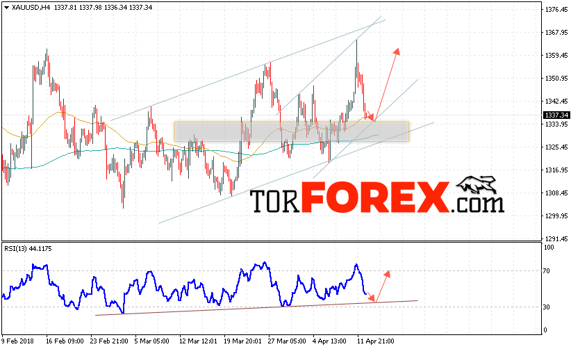 Таким образом, XAU/USD прогноз цен на Золото на 13 апреля 2018 предполагает попытку теста области поддержки вблизи уровня 1330 и продолжения роста котировок с целью выше уровня 1260, отменой варианта роста цен на Золото выступит пробой уровня 1325, в этом случае стоит ожидать продолжения падения в область ниже уровня 1300.