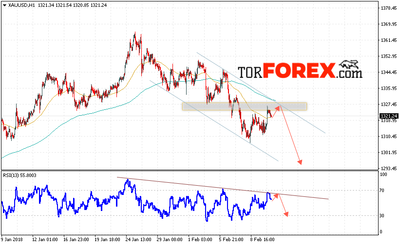 Таким образом, XAU/USD прогноз цен на Золото на 13 февраля 2018 предполагает попытку теста уровня 1330 и продолжения падения котировок с целью ниже уровня 1300, отменой варианта падения цен на Золото выступит пробой уровня 1335.