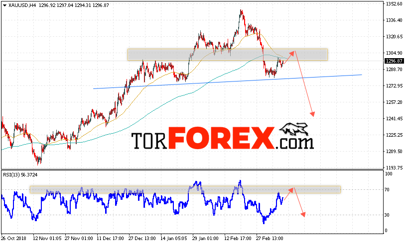 Котировки Золота XAU/USD продолжают движение в рамках снижения. В момент публикации прогноза цена Золота составляет 1296 Долларов за Тройскую Унцию. На данный момент стоит ожидать попытку роста и тест уровня сопротивления вблизи области 1305. Откуда стоит ожидать отскок и продолжения падения цены на Золото с целью ниже уровня 1240.