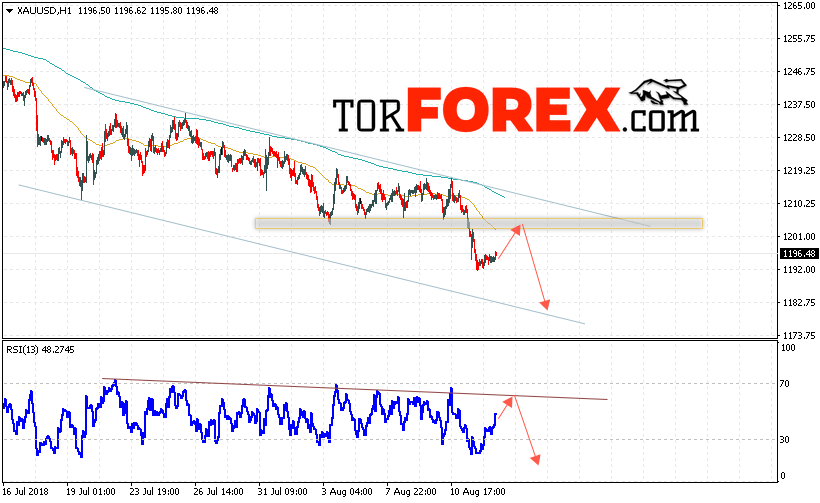 Таким образом, XAU/USD прогноз цен на Золото на 15 августа 2018 предполагает попытку теста области сопротивления вблизи уровня 1202 и продолжения падения котировок с целью ниже уровня 1175, отменой варианта падения цен на Золото выступит пробой уровня 1215, что укажет на выход котировок за пределы нисходящего канала, в этом случае стоит ожидать продолжения роста в область выше уровня 1245.