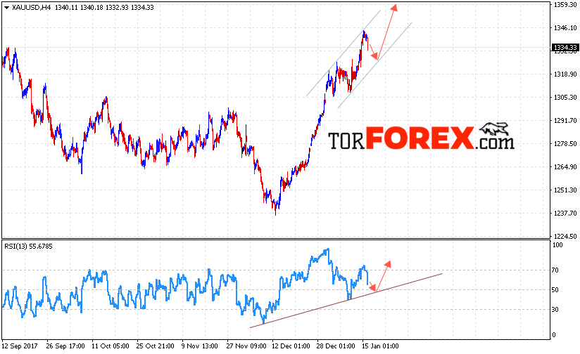 Таким образом, XAU/USD прогноз цен на Золото на 17 января 2018 предполагает попытку теста нижней границы канала вблизи уровня 1335 и продолжение роста котировок с целью выше уровня 1360, отменой варианта роста цен на Золото выступит пробой уровня 1320.