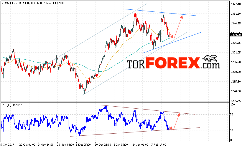 Таким образом, XAU/USD прогноз цен на Золото на 22 февраля 2018 предполагает попытку теста уровня поддержки вблизи области 1325 и продолжения роста котировок с целью выше уровня 1360, отменой варианта роста цен на Золото выступит пробой уровня 1310, в этом случае стоит ожидать снижения в область ниже уровня 1285.