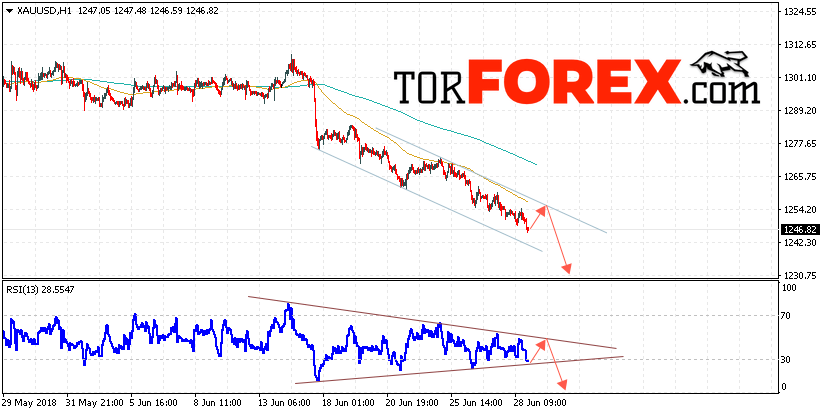 Таким образом, XAU/USD прогноз цен на Золото на 29 июня 2018 предполагает попытку теста области сопротивления вблизи уровня 1255 и продолжения падения котировок с целью ниже уровня 1230, отменой варианта падения цен на Золото выступит пробой уровня 1260, в этом случае стоит ожидать продолжения роста в область выше уровня 1275.