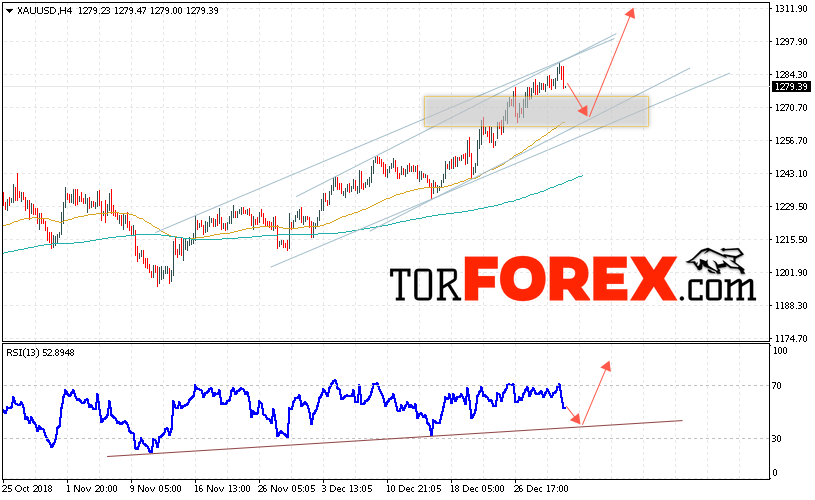 Котировки Золота XAU/USD продолжают движение в рамках роста. В момент публикации прогноза цена Золота составляет 1279 Долларов за Тройскую Унцию. На данный момент стоит ожидать попытку снижения и тест уровня поддержки вблизи области 1270. Откуда стоит ожидать отскок и продолжения роста цены на Золото с целью выше уровня 1310.