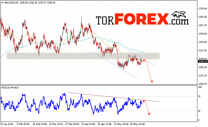 Таким образом, XAU/USD прогноз цен на Золото на 7 июня 2018 предполагает попытку теста области сопротивления вблизи уровня 1300 и продолжения падения котировок с целью ниже уровня 1265, отменой варианта падения цен на Золото выступит пробой уровня 1300, в этом случае стоит ожидать продолжения роста в область выше уровня 1355.