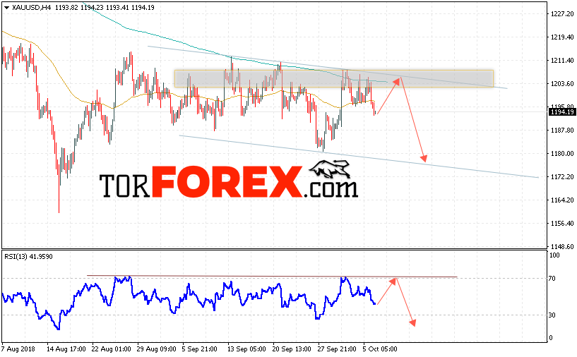Таким образом, XAU/USD прогноз цен на Золото на 9 октября 2018 предполагает попытку теста области сопротивления вблизи уровня 1205 и продолжения падения котировок с целью ниже уровня 1175, отменой варианта снижения цен на Золото выступит сильный рост и пробой уровня 1215, что укажет на пробой сопротивления, в этом случае стоит ожидать продолжения роста Золота выше уровня 1245.